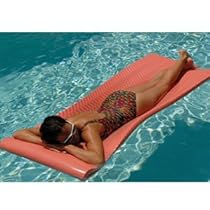 Softie Pool Floats. Softie pool floats from Brookstone let you cool off while soaking in the sun. Constructed of sealed foam with a glossy vinyl coating these floating loungers won't sink absorb water or deflate. You never have to inflate them and the vinyl coating helps keep your floats mildew-free. Our soft pool floats are available in five vibrant colors. The rippled surface lets cooling water circulate around your body. All of these floating pool loungers feature built-in headrests for added comfort. Choose yellow kiwi bronze coral or aquamarine. 25" w x 70" l x 1 1/2" h. Made to handle the elements and super-comfortable this soft yet sturdy float is made for a lifetime of durability. You'll want to get one for every member of your family--order yours today!